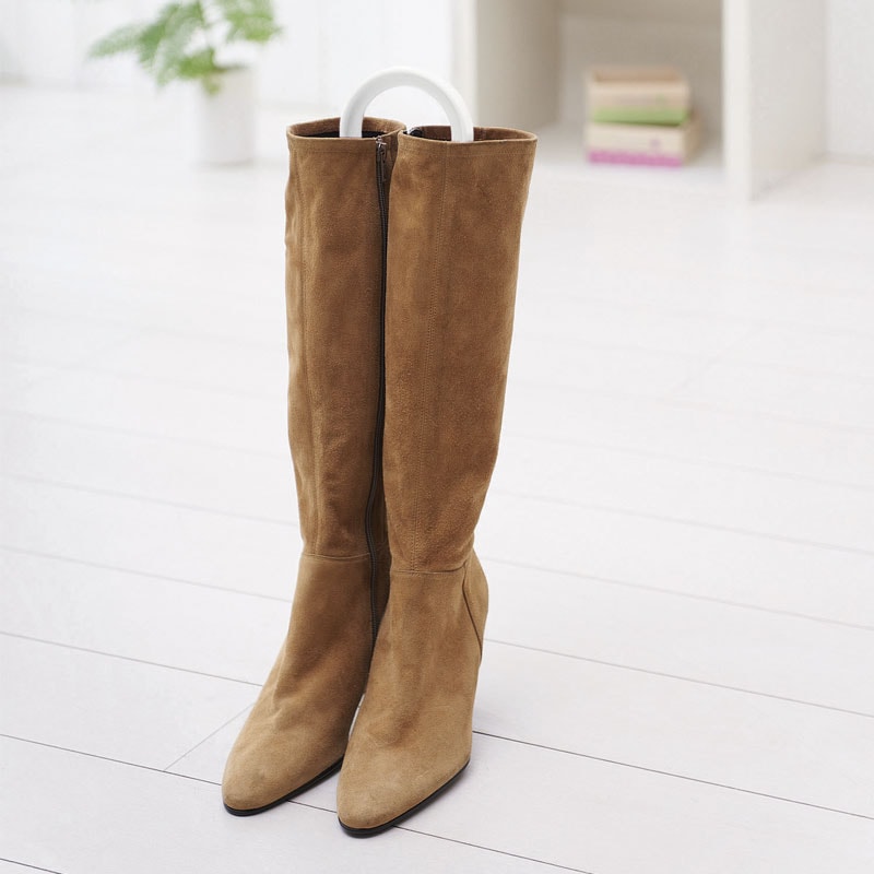 ブーツキーパーを差し込めば、ブーツは自立します。やわらかい素材のブーツにも使えるので、折れ曲がってブーツにシワがついたり、かさばって収納場所を余計にとったりすることもありません。