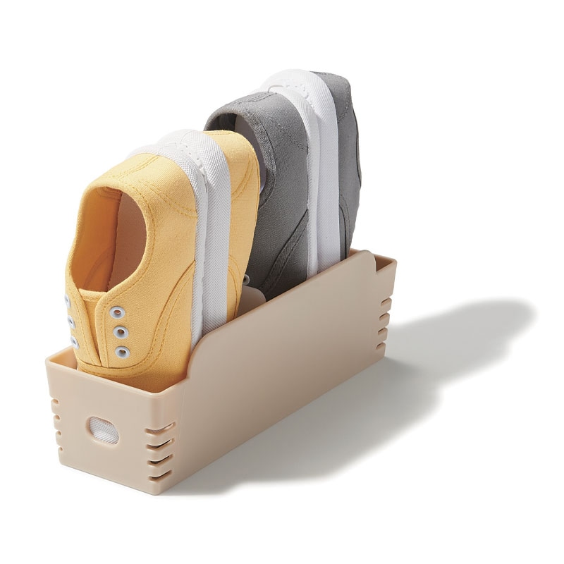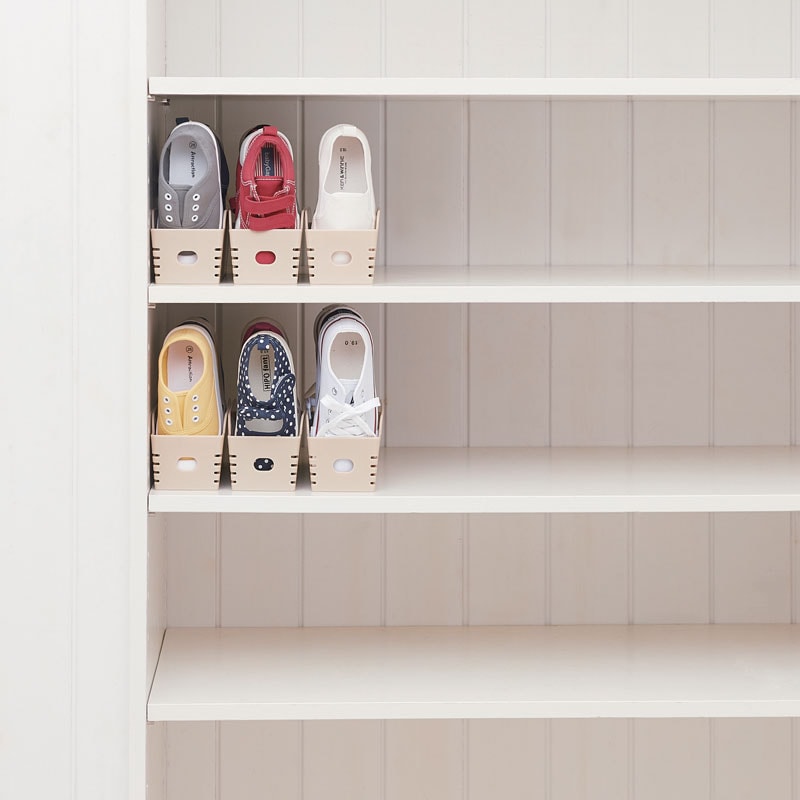 子供の靴はどうしても散らかりがちですよね。このシューズホルダーなら、ひとつに靴が2種類入るので、サイズ違いの靴もすっきり片付きます。