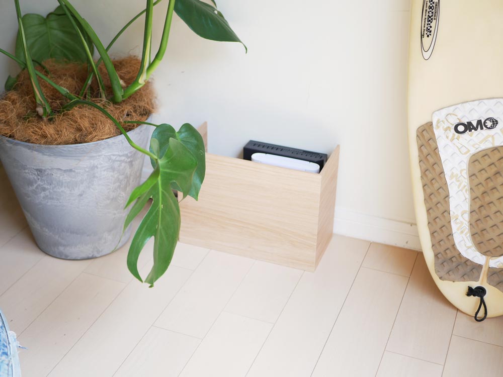 意外とお困りの方が多い、モデムやルーター、コンセントなどのケーブル類。 せっかくお洒落なインテリアを揃えても、配線などがごちゃごちゃしていたり、モデムやルーターがむき出しのままだとお洒落な空間の良さを崩してしまう恐れも…。 そこで活躍してくれるのがこのラックなんです。横向きにして隠したい場所に置くだけ!ワイドタイプならルーター類にぴったりな目隠しに早変わりしちゃうんです。