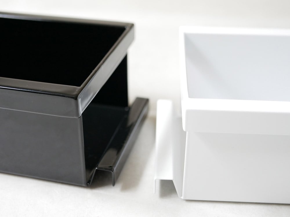 カラーはどんなキッチンにも馴染みやすいホワイトとブラックの2色。 丈夫なスチール製の本体には艶のある粉体塗装が施されています。 お手入れもさっと拭けるのでとってもラクラクです。