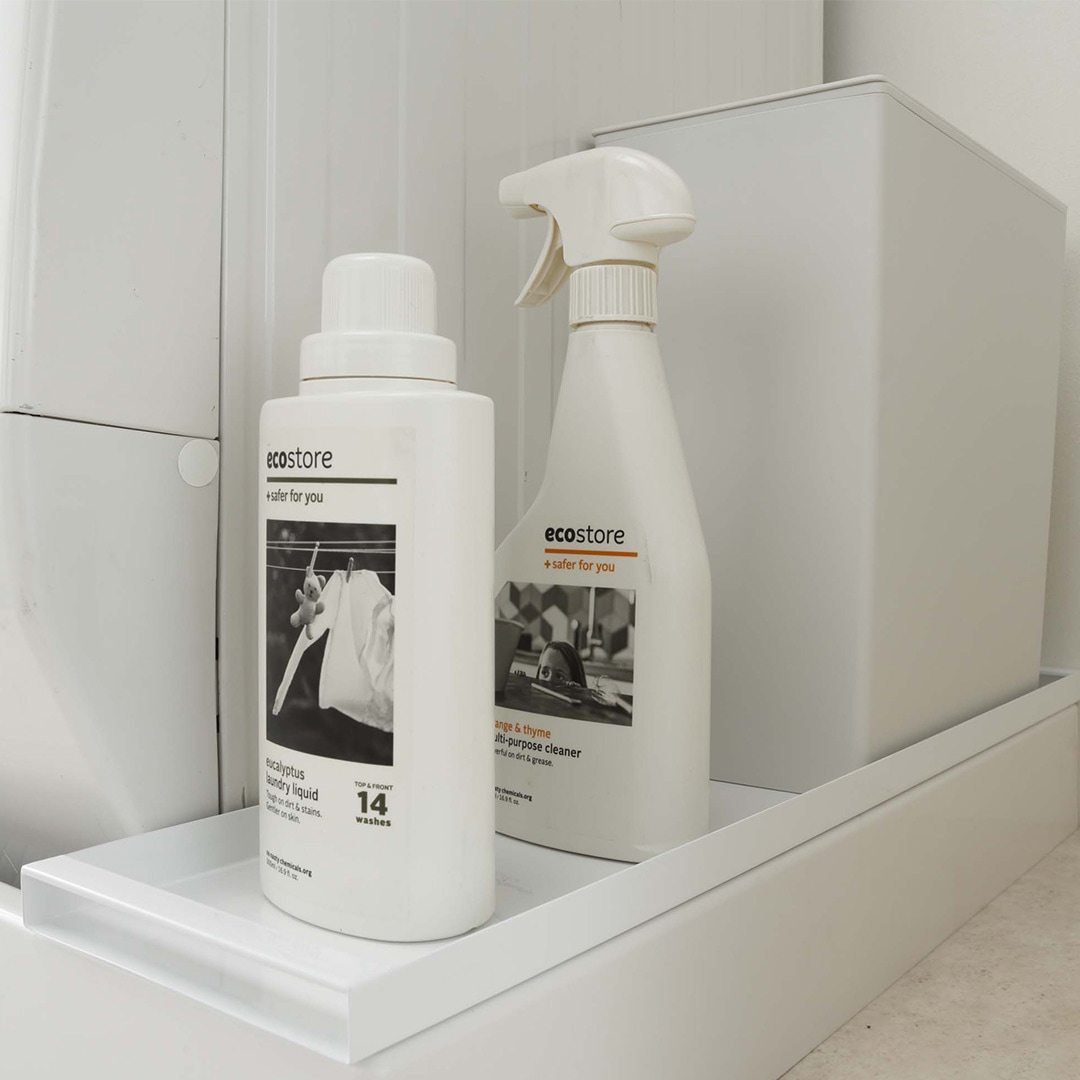 ヘリのある裏面は、洗濯洗剤や柔軟剤を置くのに便利